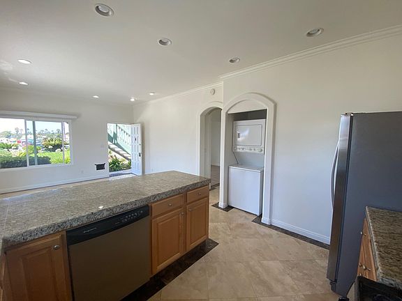 1bd/1ba steps to Moonlight Beach with ocean views. Just painted, granite counter tops, marble and travertine throughout, jetted tub, washer/dryer in unit, 1 assigned parking space and 1 car garage. 1 Year Lease. NO PETS. Please call to schedule appointment to view. Tenant pays gas/electric