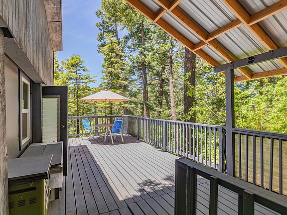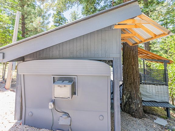 It is a magical setting with birds and wildlife right off your deck. Perfect getaway!!!! No words to describe this amazingly, completely renovated Mobild/RV /Trailer tucked away on 2 village lots with privacy & forested views. City utilities, electric, water, sewer and gas. Enjoy the mountain air on the 484 sqft partially covered deck, which is attached to the cabin and has been totally redone and extended. It features an open living room/kitchen area with a sectional couch and movable mounted TV that can accommodate a number of seating arrangements. The kitchen features a dual sink ,brand new cabinets, and a beautiful butcher block counter top. It has been rewired with ample outlets on every wall for convenience and all your electronics. New AC/Heating unit and on demand water heater. Call for a list of all updates/features. Cash only. Take a look at the 3D tour and call today to see this unique cabin high in the woods.