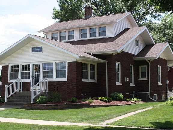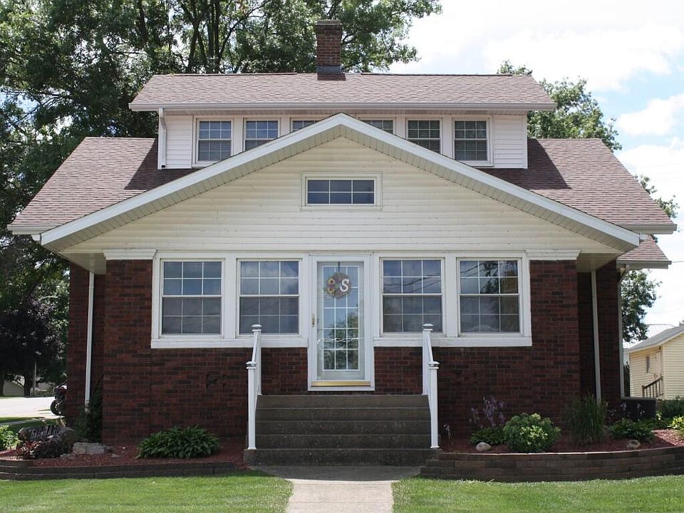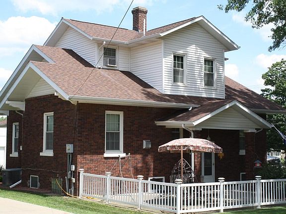 Small town living on a picture-perfect corner lot just blocks from school and close to local restaurants and businesses. This all brick house has a formal dining area and living room with original woodwork and hardwood floors. The living room and primary bedroom both feature beautiful gas fireplaces. Adding to the curb is appeal is a 4-car garage, constructed in 2004. Other updates include new windows (2004), kitchen (2004), roof (2014), furnace & central air (2004).