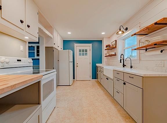 This 3 bedroom, 1 bath home is as cute as a button! The house offers a rear 3-season porch, front porch/craft room and office. The kitchen has a new farmhouse apron sink with new counter top. The roof is brand new and the siding/windows/doors were replaced in 2016. Located on a corner lot near the elementary school, playgrounds and offers a double detached garage. Move-in ready and priced to go!