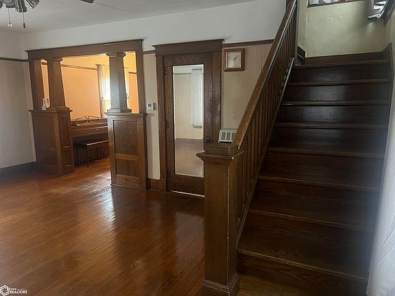 Beautiful columnsOak hardwood floorsMain floor laundryNew circuit breakersFurnace and central-airFull-size lotOpen stairway