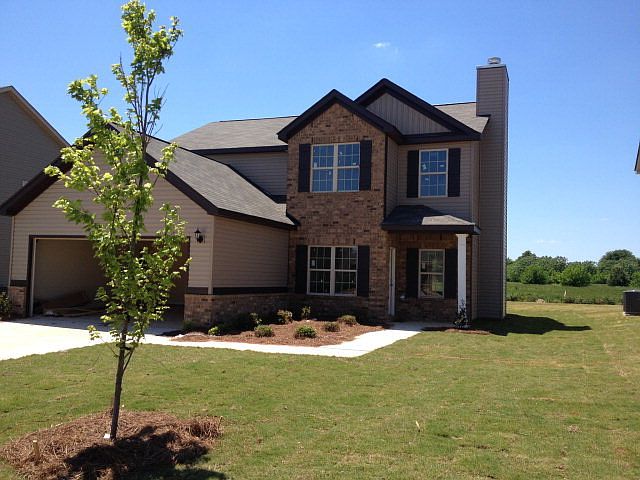 Beautiful New Construction Home, Patriot Model, features: 4 spacious bedrooms, 3 full baths, 9ft ceilings, coffered ceilings w/columns in dining room, breakfast area and center island in the kitchen with walk-in pantry, walk-in laundry room upstairs, spacious master suite w/separate shower and tub, double vanity and security system, Front brick accents, Covered back patio, Front and rear Sod and irrigation system in front yard. Home under construction - Photo's reflect plan/similar to - not of property.