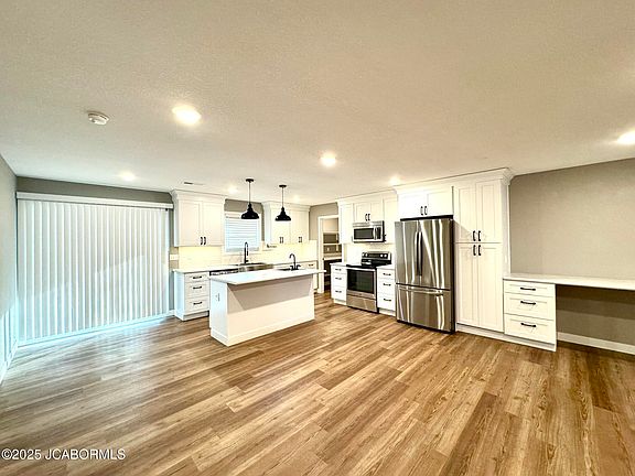 The spacious open concept living and dining area is perfect for gatherings, while the updated kitchen boasts stainless steel appliances, ample counter space, and a modern backsplash. Each bedroom offers plenty of natural light and room to relax.