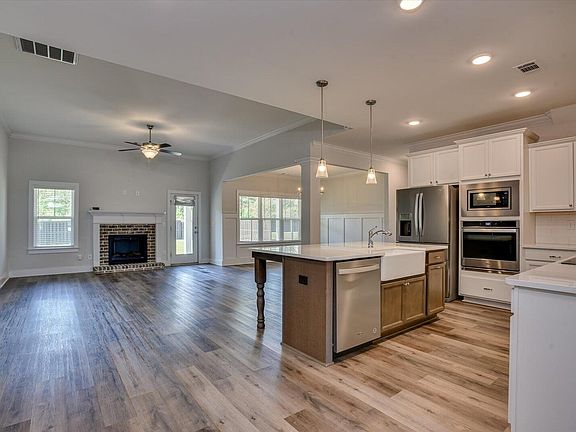 Looking for a very open plan with most of the living space on the main level? This home has LVP flooring throughout the living areas. Gourmet Kitchen, backsplash, upgraded quartz, farmhouse sink in the large kitchen island and a huge walk-in pantry. The owner's suite (on the main floor) has a tray ceiling, upgraded tile shower, double vanity with granite counter tops, garden tub with tile surround, upgraded ceramic flooring, linen closet and large walk-in closet. Bedrooms 2 and 3 are downstairs with a Jack and Jill bathroom with ceramic tile. Large open foyer with front coat closet and half bath for guest. From the garage entry - there is a mud room, closet and laundry room. Stairs to extra/4th bedroom near the kitchen. Upstairs extra space can double as a guest space with closet and full bath. Large covered front and back porch.