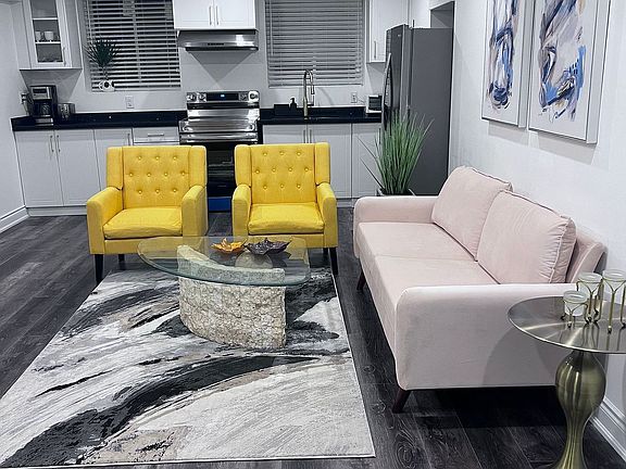 Experience elevated living in this stunning 2-bedroom basement apartment in Milton, perfect for those seeking style, convenience, and comfort. Located at 409 Boyd Lane, this beautifully designed unit features high-end finishes, a spacious open layout, and a private entrance, creating a tranquil oasis in a vibrant community. The apartment, available furnished or unfurnished, is ready for immediate move-in, offering flexibility to suit your lifestyle.Inside, you'll find sleek dark hardwood floors throughout, enhancing the modern, polished look of the space. The open-concept living area is both stylish and inviting, with pops of color from the bold accent chairs that bring a unique charm. The kitchen is a chefs dream, equipped with high-end stainless steel appliances, including a double-door fridge and a smooth electric cooktop, along with elegant white cabinetry and a luxurious black granite countertop, complemented by a brushed-gold faucet.Each bedroom offers a cozy retreat with minimalist decor and ample storage, creating a serene environment perfect for relaxation. The contemporary bathroom features a glass-enclosed shower with marble-style tiling, a black granite vanity, and brushed-gold fixtures, adding a touch of luxury to your daily routine. The suite also includes central air conditioning, in-unit laundry, and one private parking space, enhancing your convenience and comfort.Situated in a peaceful, family-friendly neighborhood, this home offers easy access to Miltons many amenities, including parks, schools, shopping centers, and scenic trails. Its close proximity to major highways makes commuting a breeze, connecting you seamlessly to the broader Greater Toronto Area. Embrace Miltons unique blend of suburban charm and urban accessibility in this sophisticated, move-in-ready basement apartment