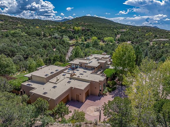Perched on over 3 lush acres in one of Santa Fe’s most coveted enclaves, this exceptional estate offers a rare synthesis of space, serenity, and natural beauty. It is less than 10 minutes from the plaza and the city’s extensive mountain hiking trails are only a short walk away. Designed with both privacy and flexibility in mind, the residence unfolds across two thoughtfully connected wings, encompassing five bedrooms and a range of inviting communal and intimate spaces. It is ideally suited for multigenerational living, entertaining, or even a creative retreat.