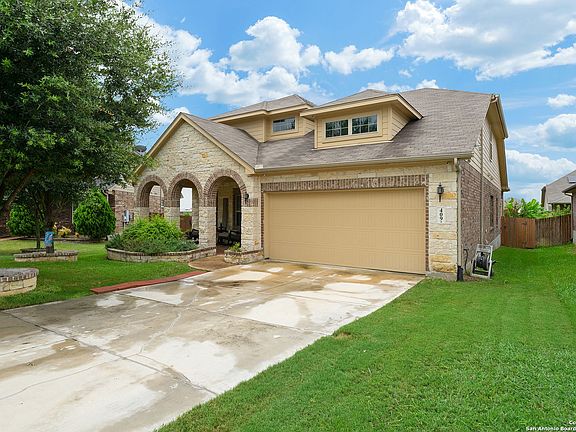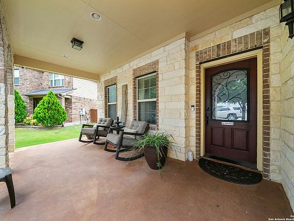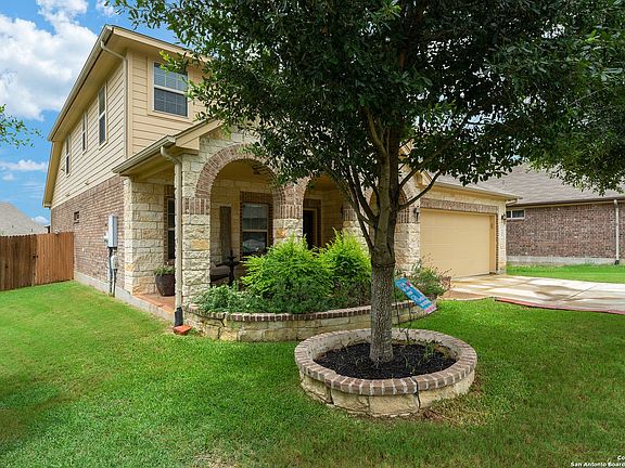 Immaculately maintained home now available in the highly sought-after Turning Stone neighborhood of Cibolo, TX. This stunning 4-bedroom, 2.5-bathroom residence boasts an open floor plan, complete with an additional game room and study/office area to suit all your living needs. Upon entry, you'll be greeted by a spacious foyer showcasing elegant ceramic tile, which flows throughout the kitchen and wet areas. The inviting living area, featuring soaring ceilings, a cozy fireplace, and abundant natural light from surrounding windows, offers a warm and welcoming atmosphere. The well-appointed eat-in kitchen is open to the family room, making it perfect for entertaining. It features sleek granite countertops, a stylish tiled backsplash, upgraded cabinetry with pull handles, a generous island for additional prep space, and matching stainless steel appliances, including a refrigerator and double ovens. The conveniently located master suite is on the first floor, offering a luxurious en-suite bath with dual vanities, a spacious garden tub, a separate shower, and an expansive walk-in closet. Upstairs, you'll find three generously sized secondary bedrooms and a spacious game room. Outdoors, the backyard is a true retreat, with an extended covered patio, a storage shed, and a fully equipped outdoor kitchen ideal for hosting weekend BBQs with friends and family. Just down the street from neighborhood amenities such as a pool, sports court, park/playground, and jogging trails, this home also offers easy access to Interstate 35, Loop 1604, and is only a short drive from Randolph AFB. Don't miss the opportunity to see this beautiful home!