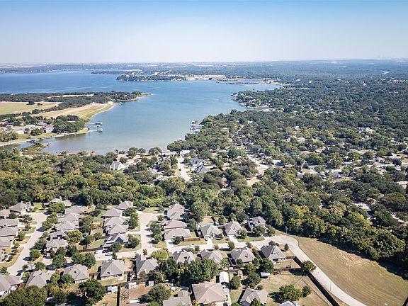 Gorgeous single-story in Escondido, the gated community just off Eagle Mountain Lake. This 4-bed, 2-bath home pairs an open layout with flexible spaces—a formal dining, living or study. The kitchen features granite counters, an island, walk-in pantry, and excellent flow to the living room with an electric brick fireplace. Private owner’s retreat with jetted tub, separate tiled shower, and generous walk-in closet -13' x 9' with built ins! Outdoors, enjoy covered patio lush trees and full landscaping with sprinkler system on a near quarter-acre lot. Storage shed in back yard for yard equipment or extras. Minutes to lake access (see aerial photos) and Hwy 199 for an easy Fort Worth commute—come enjoy gated serenity near the water.
