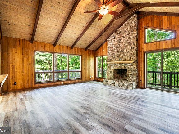Price REDUCTION!!! Come fall in love with this home and the breathtaking views that you can see from almost any room in the house! This home has so many amazing features!! On the main level you have 2 large bedrooms, a craft room/office/hobby room, laundry, large family room with vaulted ceilings, brick fireplace, huge luxury bathroom, and gourmet kitchen with commercial stove and brick back splash., with windows galore! Downstairs you'll find one half of the basement has a large bedroom with walk-in closet and full bathroom as well as another living room with fireplace and an additional washer/dryer hookup. This space could easily be used as in-law/teen suite with separate entrance. The other half of the basement also has a separate entrance and would make a great man cave/bar (this is what the previous owners did there) complete with a wine cellar and so much more that you could dream up this space is HUGE and has a split system to provide heat and A/C to this area. (both halves of basement are also connected from inside the upper home and the lower deck) Outside you will find a two level deck that spans the entire length of the house with the most amazing views of your new 3+ acre property! The deck is pre-wired for jacuzzi tub and a whole house generator. This is a great location just 30 min from Winchester but the lower WV taxes. In addition to the above the house has a new metal roof and new HVAC! This is a truly unique home that would be a great place to get away from the city and either live here full time or make this your get-a-way from it all retreat! We understand the color of the outside might not be as loved by others as it is by the seller so the seller is willing to give a credit towards repainting.