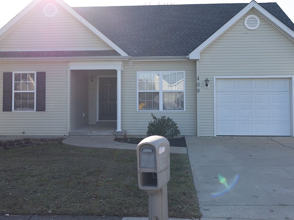Move-in ready 3BR/2BA single-family home tucked on a quiet cul-de-sac in an HOA community. An airy great room with high ceilings flows into a practical kitchen (fridge, electric range, microwave, dishwasher) over real hardwood & laminate floors. The master bedroom includes an attached bathroom, walk-in closet, and convenient washer/dryer hookup all within the bedroom. Out back, enjoy a big backyard and a newer 2021 deck great for grilling or morning coffee. Other features include: 1-car garage, central heat/air with a smart thermostat, and fiber-internet capable. Small pets allowed with a fee. No smoking/vaping inside. Available for immediate move-in.