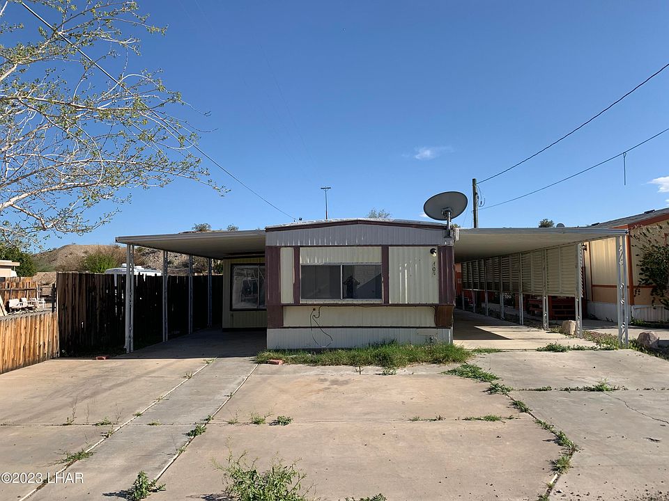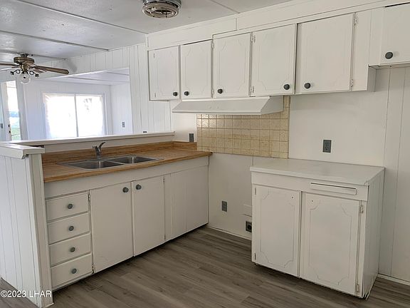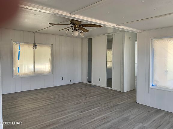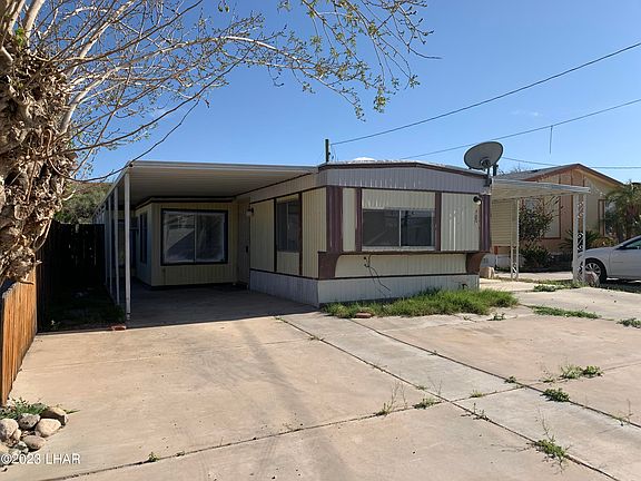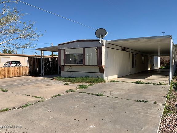 On Leased Land - Recently updated two bedroom, two bath mobile home located in Bluewater Lagoon Subdivision with community access to launch ramp, beach and swimming pool. Freshly painted inside with new vinyl plank flooring installed throughout. Large carport with plenty of parking for your river toys. Covered patio at the front and also in the rear. Large backyard will be a great entertainment space. Seller offering credit for AC and Kitchen Appliances.