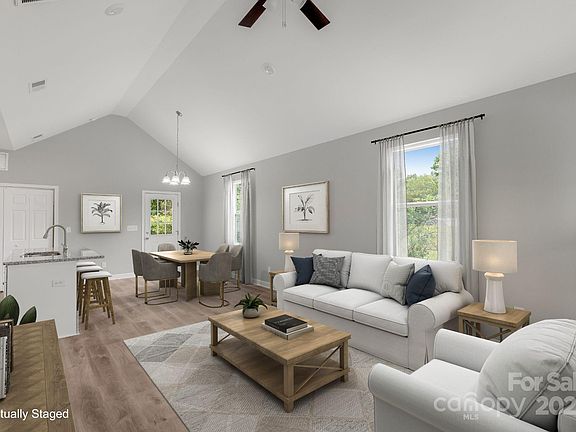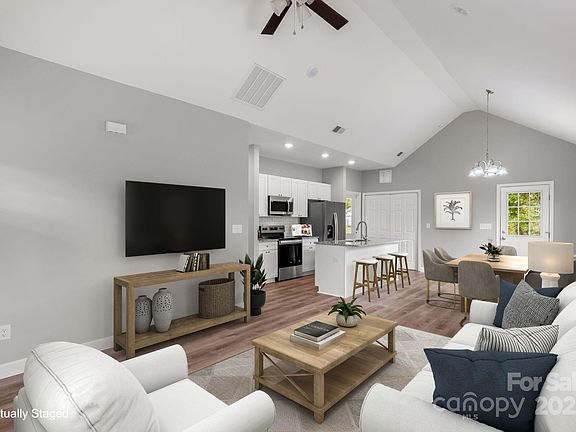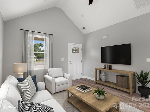 Welcome to this beautiful new build offering an open concept plan with tall cathedral ceilings, luxury vinyl plank flooring thruout & thoughtfully designed upgrades hard to find at this price! Enter the cute front porch inviting you into the living room featuring high ceilings which opens seamlessly to the kitchen and dining area, allowing ease in entertaining and functional everyday living! The neutral design palette extends throughout the home including the kitchen with large granite island w/ seating, stainless appls, granite counters, white soft close cabinets & separate pantry. Make your way to the primary with large closet & full bath w/ tile surround shower & granite ctrs. The secondary bedrooms have nice closets & share the hall bath w/ beautiful tile shower & granite vanity. Additional features include a storage closet, all LVP floors thruout, no HOA, located near downtown shops in East Spencer, I-85 and tons of options for dining, shopping, recreation and entertainment! Ask about special financing that could provide $15,000 down payment assistance!