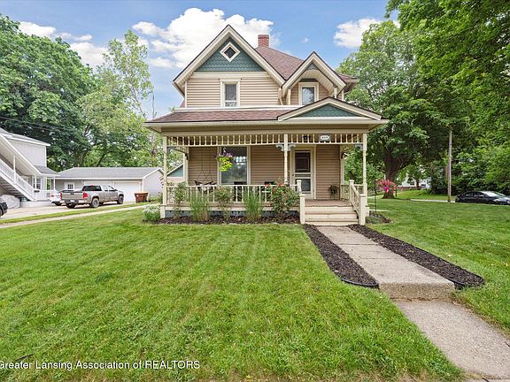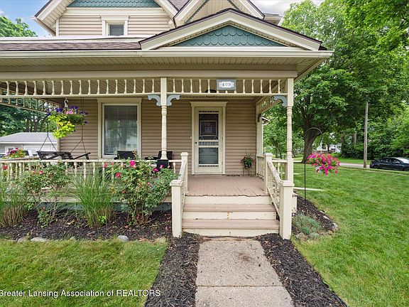 Step into timeless elegance with this beautifully updated turn of the century home that perfectly blends historic charm with modern comforts. A beautiful covered front porch, featuring elaborate Victorian spindle trim, welcomes you in through a solid wood antique front door. From the moment you enter, you'll be captivated by the original character showcased in the amazing open staircase (WOW factor!), high ceilings, unique built-ins, pocket door, and meticulously restored hardwood floors. The spacious living room features large windows for an abundance of natural light, and a gas fireplace with tile surround and wood mantel. French doors lead to a flex room that the current owners are using as a den, but could be used as a child's playroom, office, or a first-floor 4th bedroom. The thoughtfully updated kitchen and bathrooms offer contemporary convenience while honoring the home's classic aesthetic. You'll appreciate the butler's pantry with tons of additional cabinetry, and the convenient first floor laundry/half bath. Upstairs are 3 bedrooms, including a primary with 2 walk-in closets, and a spacious updated bathroom. You'll have options for relaxing spaces here, including the 3 seasons room that features beautiful cedar plank flooring and 3 walls of windows, the covered side porch facing the sunrises, or the large covered front porch. Additional features include a detached garage, new roof in 2020, and spectacular landscaping! This home is conveniently located within walking distance to the shopping and restaurants in downtown St Johns. Don't miss your chance to own a piece of history with all the right updates!