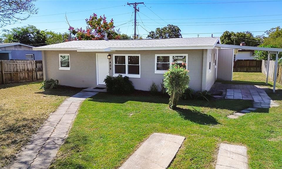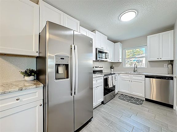 This is a must see! Fully renovated, beautiful 1,088 square foot block home on a large lot in desirable Sanford location with fenced backyard. This 3 bedroom, 2 bathroom home has been fully remodeled and is in turn-key condition. Enjoy the spacious new kitchen with solid wood cabinets, modern hardware, new stainless steel appliances, new sink and faucet, plenty of (marble) counter space and built-in pantry. The interior is freshly painted in neutral grey tones which compliment the beautiful wood-look flooring, new baseboards and new light fixtures throughout. Home boasts newer roof, new electrical panel, new air conditioner and ductwork, new water heater, new front door, new interior six panel doors, new windows throughout, fresh paint inside and out, remodeled kitchen, new stainless steel appliances, remodeled bathrooms, new wood-look tile throughout, new baseboards, new light fixtures throughout and carport (12x11). This home is centrally located right off Sanford Avenue in the heart of Sanford. No hoa. Come see for yourself. Check out 3D Tour in the Virtual Tour Link.