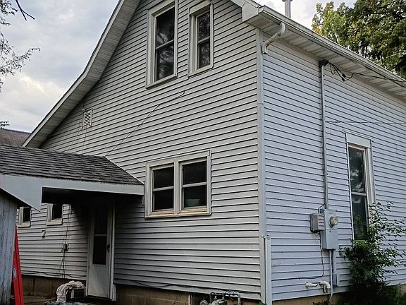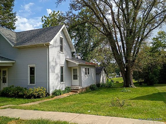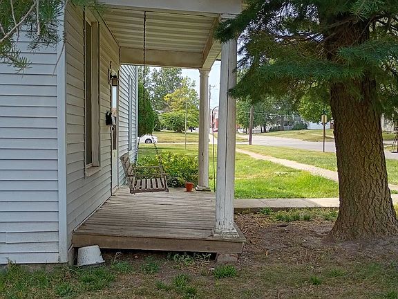 This home features one bedroom on the main floor, two upstairs bedrooms, and a versatile open area at the top of the stairs, could be used as a second living room. The main floor includes a convenient laundry room off the kitchen and a dining room with a built-in hutch. The roof was replaced approx 6 years ago and home has newer windows. Kitchen ceiling shows water damage will need to be replaced. The home has one full bathroom on the main floor and a half bathroom in an upstairs bedroom. Ample storage closets line the hallway from the bonus area to the bedrooms. Small covered front porch gives you room to sit and enjoy the community around you. A shared driveway/old alley leads to an detached garage with a covered walkway to the house.