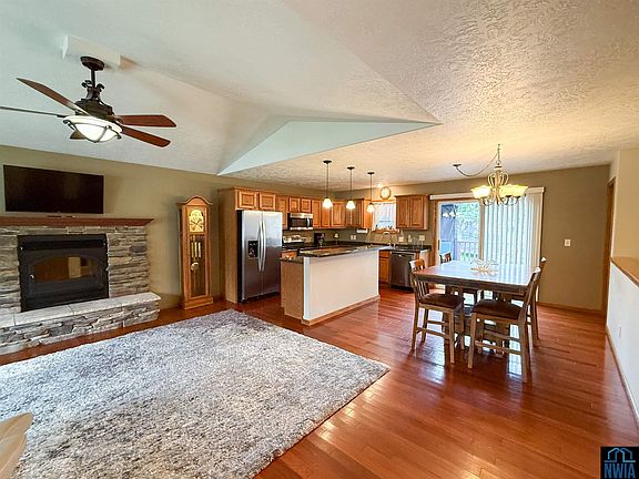 This spacious, walk-out ranch offers 4 bedrooms, 3 baths and a convenient open concept living space for entertaining. Main floor has gorgeous wood floors throughout the living room, kitchen and dining area. Living room has a large window overlooking the manicured front yard, and a wood burning fireplace. Kitchen has tons of cabinets, counterspace and an island with bar height seating. Dining area has access to the deck which overlooks the backyard with firepit area. Main floor also has master suite with walk-in-closet and a full bath; an additional full bath is located by 2 more bedrooms on the main floor. Easy access to the garage through the laundry room/drop zone. Downstairs has French doors to the backyard patio through the roomy family room, an additional bedroom, 3/4 bathroom and utility room with 2nd washer and dryer.