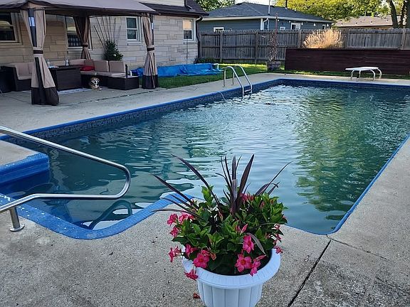 Beautifully updated 3 bed, 2.5 bath home located just minutes from Downtown Fortville! This home features a huge lot and ultimate backyard retreat! Large in-ground pool, fully fenced in yard, pergola, and huge yard barn. Barn is currently set up as a home gym and equipment is included. Hardwood floors throughout the main living area, fireplace insert in the living room, live edge wood bar and granite countertops in the kitchen. Primary ensuite includes a large walk-in closet, fireplace insert, and all bathrooms upgraded with ceramic tile & solid stone countertops. Updated lighting and fixtures throughout. This home has a ton of character and charm! 1 year home warranty included!