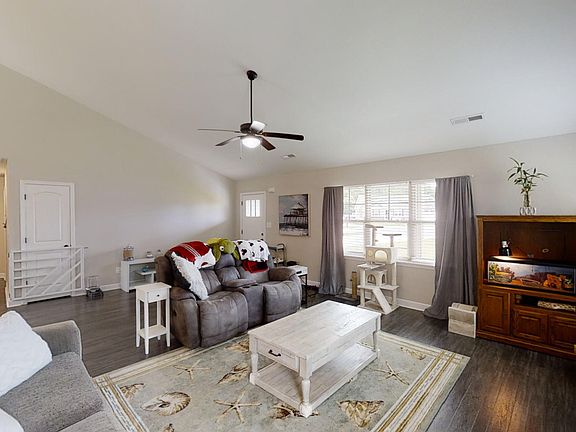 Open Floor Plan! Welcome Home to the Caden floor plan, you will absolutely fall in love. As you open the front door and walk inside you will immediately feel like you are home, from the Living room with an electric fireplace, then the Kitchen with lots of cabinet space, huge island for entertaining and dining area large enough for a six-person table. You also have a large pantry for all your food goods. Then off the dining area, your master bedroom with walk in closet, large bathroom with walk in shower that has glass doors, double vanity and nice size linen closet. Then down the hall to a large hall bath and 2 other bedrooms, both nice sized for your kids or to have as guest rooms, and best of all, there is LVT flooring throughout for easy clean up. 2-car garage that will fit 2 mid-size cars and sits at the end of the cul-de-sac on 1.17 acres. You will love the back yard with the woods and starry Carolina Night Sky! Close to back gate to Camp Lejeune and short distance to Beaches. You don't want to let this one pass you by. Make your appointment today!