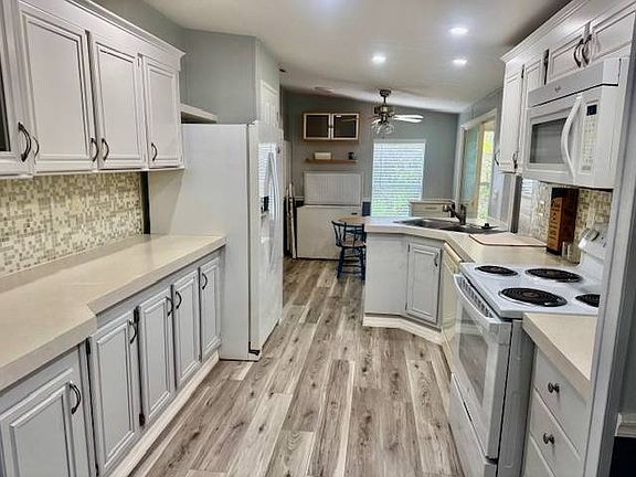 Discover carefree living at Lake Pointe Village in beautiful Mulberry, Florida, a Gated, peaceful, and active 55+ community loaded with top-notch amenities. Conveniently located close to Lakeland and Tampa, you can also take advantage of Central Florida attractions, Lakes, and the Gulf Coast Beaches. This newer home is being sold Furnished and features ALL-NEW flooring throughout, a 7-year-old roof, 4-year-old A/C, and new water heater 2025. This spacious home includes a driveway and carport for your vehicle protection upon arrival. Step inside this inviting home that resonates modern appeal throughout. The lovely galley kitchen boasts ample cupboard and counter space, matching appliances, modern cabinetry, and a decorative tiled backsplash wall, as well as a breakfast area and laundry/utility space at one end, where windows let natural Florida light in. The other end of the kitchen opens up to a spacious and elegant dining area that offers a seamless flow into the living room, perfect for entertaining. Beautiful wood plank flooring adds a modern look with ease of maintenance. This newer home includes design and detail to lovely trim, fixtures, and color schemes throughout. Enjoy the relaxing lanai with surrounding windows for natural radiance. This room is adorned with elegant ceramic tile underfoot and shiplap walls and ceiling for a warm farmhouse feel. Clean, crisp, and comfortable bedrooms offer a tranquil atmosphere. The Master bedroom includes a large walk-in closet with built-in shelves, drawers, and an amazing en suite with an extra-large walk-in shower adorned with glass doors, beautiful tile, and handrails for your safety. A large modern vanity with a granite countertop and a spacious linen closet are added bonuses in this en suite. Enjoy your morning and evening routines rejuvenated for another day in paradise. On the exterior, the attached shed offers lots of cabinets, shelving and room for a workshop. This home is perfect to begin your new Florida lifestyle. Welcome to Lake Pointe Village, a 55+ pet-friendly gated community packed with resort-style amenities: a state-of-the-art full-service clubhouse with a beautiful dining and ballroom, a fitness center, game room, and library. Outdoors, take advantage of the heated swimming pool and jacuzzi with a large patio area under shade, shuffleboard, and picnic/shelter area. Also, admire the mesmerizing pond with fountains and a waterfall. This park is accessible to major highways, shopping, dining, attractions and the Tampa airport. Whether you are looking for a home year-round or a seasonal escape, make this your next move where your dream lifestyle awaits! Lot rent is an affordable $770 per month that includes all amenities. Call today to schedule a showing. All listing information is deemed reliable but not guaranteed and should be independently verified through personal inspection by appropriate professionals. Our company does not and cannot guarantee or warrant the accuracy of this information or the condition of this property. Measurements are approximate. The buyer assumes full responsibility for obtaining all current rates of lot rent, fees, and pass-on costs. Additionally, the buyer is responsible for obtaining all rules, regulations, pet policies, etc., associated with the community, park, or home from the community/park manager. Our company is not responsible for quoting said fees or policies. Financing is available through 3rd party lenders. The sales price does not include tax, dealer fees, or administrative fees. Please contact the sales agent for additional information.
