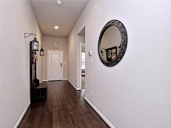 Adorable one-story on treed lot with cozy covered front porch. Open floor plan with hardwoods that stretch throughout. Lots of natural light in every room. Plenty of cabinets, SS appliances + gas cooktop, an island with breakfast bar and granite counters. The primary suite has high ceilings, and huge walk in closet. The en suite bath has luxurious soaking tub, double vanities & separate shower. The secondary bedrooms are large and share a bath. The extended patio with pergola has plenty of room for dining out while overlooking your wooded greenbelt view, with no neighbors behind! Leander ISD!