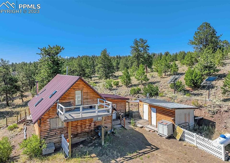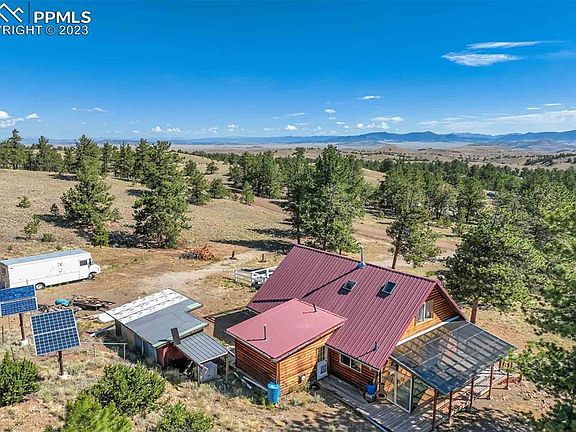 On the outskirts of Hartsel, CO, lies an intriguing fixer-upper cabin on a 5.5-acre plot. Off-grid retreat with two bd & 1.75 ba operates efficiently, powered by solar and propane for a sustainable escape. Despite quirky touches, like an odd bathroom vanity and unfinished areas, the house brims with potential. Two loft areas with a 3/4 bath offer skylights and mountain views, perfect for an inspiring studio reflecting your flair. With a woodburning stove in the inviting living room and a spacious covered deck surrounded by nature, the cabin offers a cozy atmosphere. Create delightful meals in your comfy kitchen equipped with gas appliances. Free from HOAs or Covenants in Nine Mile Heights, this captivating cabin provides the freedom to craft your mountain home, conveniently close to shopping and entertainment. Additionally, it offers easy access to Eleven Mile & Spinney Mountain Reservoir for summer enjoyment and is just an hour away from Breckenridge for winter activities. Don't miss the chance to explore the possibilities of this unique haven – schedule your visit today!