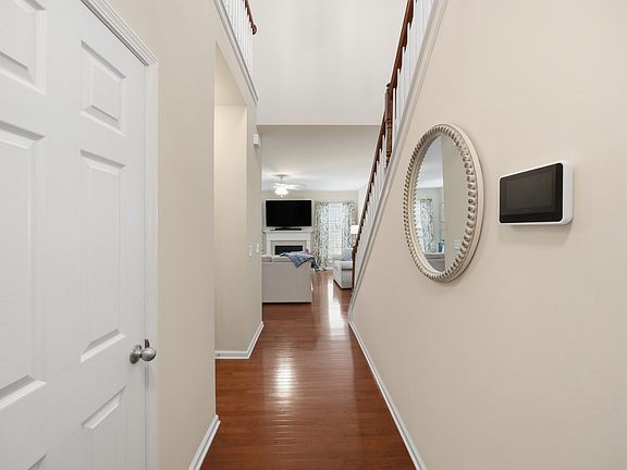 Double tray ceilingGas log fireplaceReal hardwood floorsDual closetsSophisticated primary suiteJetted whirlpool tub