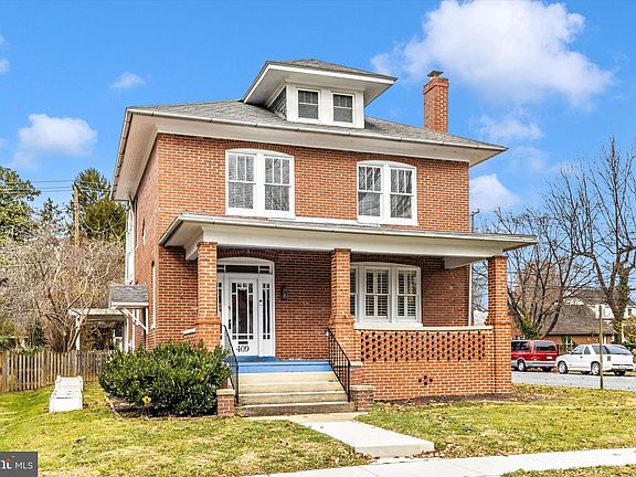 Classic Hood College four square loaded with charm and character. This home offers all the space you want, and nothing you don't need. Clean and efficient living in a very manageable amount of square footage. This location is hands down one of the best in town. You won't find a more bucolic street than Magnolia. One of the loveliest lifestyle features of this home is the front porch. Perfect for sitting, spending time with neighbors, or waving to those you know as they go by. Enjoy dressing the porch in the summer with hanging pots and plants, or adorning it in the winter with holiday lights. The glass front door is original to the home and draws you into the foyer. The first thing you're going to notice when you walk inside is the spectacular inlaid wood floors throughout the first floor. You have a classic foyer and coat closet as you enter the home. To the right is the formal dining room complete with fireplace with built-in bookshelves flanking it, and a huge front window. Continue thru the main level to the family room. Conveniently located between the kitchen and dining room, this large room is great for even your largest sectional sofa and makes for a wonderfully comfortable living space. Continue around to the kitchen for one of the most charming remodels around. This is such a smart layout and use of the space, while also giving you an eat-in bar area, crisp cabinets and counters, stainless appliances, a hidden fridge, built-in shelving and a powder room for the main floor. Upstairs, the primary bedroom is huge. Enough room for a shared office or art area, this room can accommodate a good bit of furnishings. The primary also features a staircase to the attic which has fantastic storage. The second and third bedrooms are also on the same level and have delightful views onto the rear screened in porch. The porch spans the entire back side of the home and makes an enjoyable outdoor to indoor spot to spend time. The upper level full bath is tastefully renovated with a modern walk-in shower with full glass doors. Head down to the basement for more fabulous space. Use it for storage, or improve it and make it more living space. The rear yard is fully fenced with a patio and pergola covered in the most spectacular wisteria. There is also a rear porch off of the kitchen , as well as a historic garage and driveway for off street parking. Brand new HVAC system gives you proper central a/c and supremely efficient electric heating. There home will feel like a well fitting glove keeping you cozy yet comfortable with ample space all at the same time.