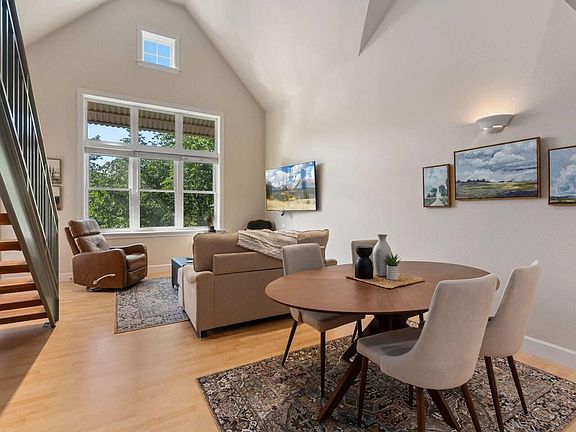 Discover the charm of Old Town Fort Collins with this 2-bedroom condo, perfectly situated on the edge of town and adjacent to Lee Martinez Park and the Poudre River Trail. Feel at home in this unit featuring majestic 17-foot vaulted ceilings, an open floor plan, and a balcony that offers stunning views of the park and the mountains. The condo is conveniently located on the main level of a building that houses business offices and is secure after 6pm, requiring a key for entry. This condo provides a fully equipped kitchen with a gas stove, perfect for preparing meals at home. The primary bedroom is an upstairs retreat with a king-size bed, walk-in closet, and a private full bathroom with a glass shower. The second bedroom on the main level includes a queen-size bed and access to a shared hall bathroom, which is handicap accessible. High-speed internet and streaming services are available on both TVs, ensuring entertainment is always at hand. The condo includes a dedicated parking spot in an underground garage within the same building, accessible via elevator. Additional parking is available in the lot. Dogs are welcome with prior approval, though cats are not allowed due to allergy considerations. Set just a 10-minute walk from the vibrant shopping and dining options of Old Town, this condo offers the best of urban living alongside the tranquility of nature. Steps away from the building, the Lee Martinez Park and the Poudre River Trail invite you to explore miles of scenic trails, perfect for outdoor enthusiasts. The building's secure access after 6pm ensures your safety, requiring a key to enter. Please be aware that dogs are allowed with prior approval, but cats are not permitted due to allergy concerns. The condo features an office nook overlooking the downstairs area, ideal for those who need a dedicated space to work from home. With high-speed internet included, you can stay connected and productive.
