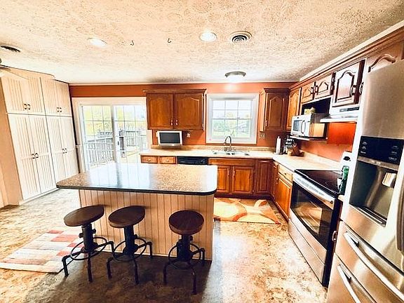Spacious raised ranch on 4 peaceful acres offering 5+ bedrooms and 3 full baths along with exceptional outbuildings. Discover the perfect blend of comfort, space, and functionality in this beautifully maintained home. This home provides ample room for family, guests, or home offices. The lower level has been freshly updated with new flooring and paint, complemented by a professional dry lock system for lasting protection and peace of mind. Upstairs, the open layout and generous living spaces create an inviting atmosphere for entertaining or everyday living. Enjoy the outdoors from the covered front porch that spans the full width of the home, or retreat to the multi-level deck overlooking an above-ground pool and hot tub, perfect for relaxing or hosting summer gatherings. For hobbyists, contractors, or anyone needing extra storage, this property offers two detached buildings, each equipped with multiple overhead doors, full electric service, and cement floors, ideal for workshops, vehicle storage, or recreational equipment. Additional updates include a new well pump and water softener system, ensuring modern convenience and reliability. Set on a beautiful country parcel with room to roam, this property delivers the best of rural living while maintaining easy access to nearby amenities.
