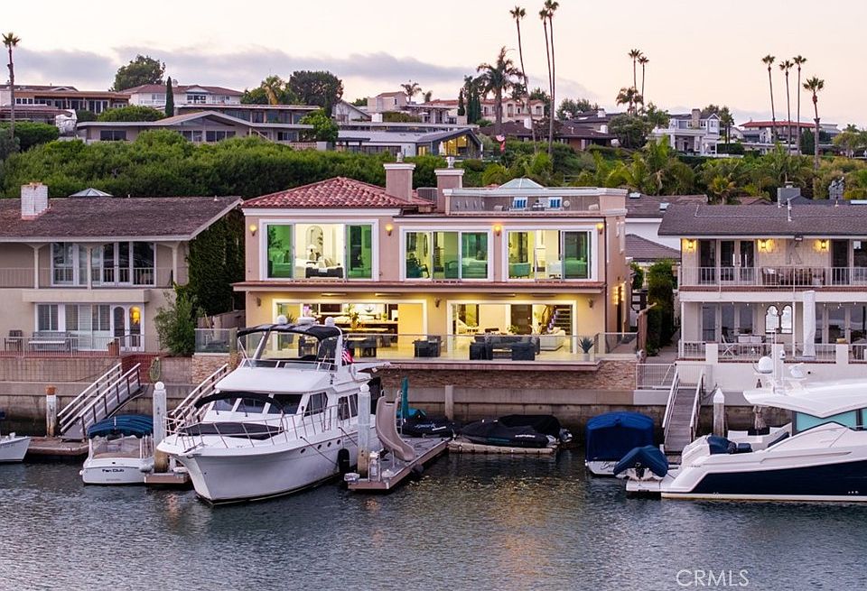 Welcome to 409 Morning Star Lane, an exceptional bayfront residence in the highly sought-after, family-oriented Dover Shores community of Newport Beach.This completely renovated home offers the best of coastal living with direct bay access, a private dock, and its own private beach. Designed for seamless indoor-outdoor living, the bright and open floor plan includes spacious living and dining areas that flow to a waterfront patio with a built-in fire pit perfect for entertaining or relaxing by the water. Inside, the gourmet kitchen has been fully renovated with premium Dacor appliances, sleek finishes, marble countertops and abundant storage. A dramatic skylight above the indoor pool with a Juliet balcony fills the home with natural light, creating a resort-like atmosphere. Wood flooring flows throughout the downstairs, while recessed lighting and multiple fireplaces, including one in the living room and another in the primary suite, add warmth and sophistication. The main house features three bedrooms, each with bayfront views, including a luxurious primary suite with its own private balcony, walk-in closet, double shower, soaking tub, and fireplace. A spiral staircase leads to a rooftop deck with sweeping water views, while an oversized laundry room adds convenience for everyday living. Above the three-car garage sits a guest house with two additional rooms and kitchen, offering flexible space for visitors or a private office. The garage also includes dedicated storage for jet skis and paddle boards. Modern upgrades such as multiple-zone A/C and smart home technology enhance comfort and ease. Whether you're enjoying evenings by the outdoor fire pit, mornings launching a paddle board directly from your dock, or simply soaking in the tranquil bayfront setting, this residence is designed to elevate everyday living. Located near top-rated schools, upscale shopping, fine dining, and just minutes from the beach, 409 Morning Star Lane offers the ultimate Newport Beach lifestyle.