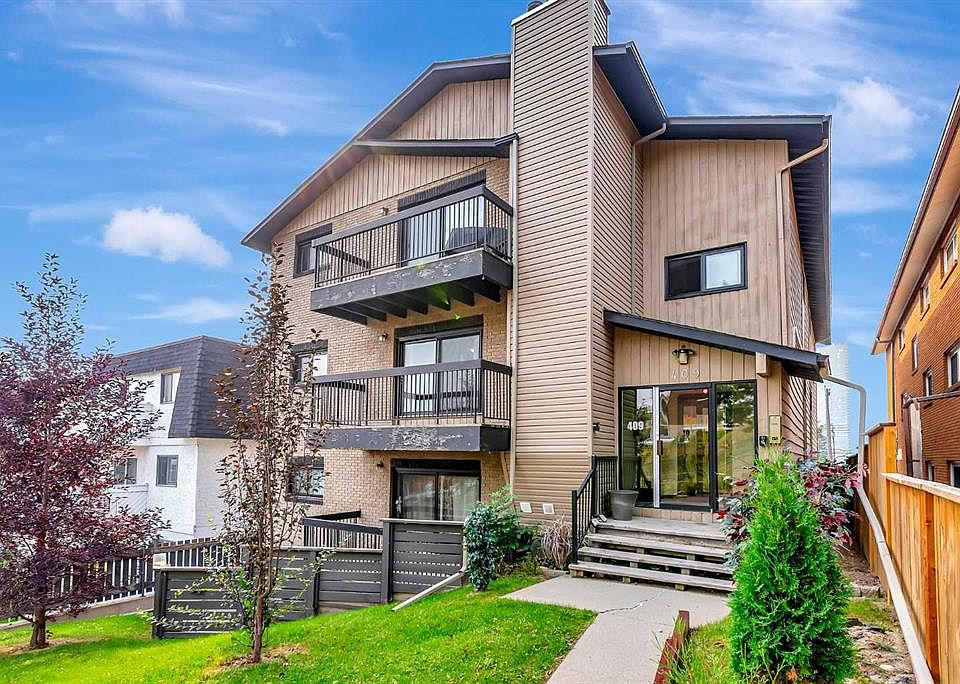 Welcome to this beautifully maintained 2-bedroom condo in Lower Crescent Heights, perfectly situated within walking distance to downtown, Bridgeland’s vibrant high street, restaurants, shops, and parks. Thanks to the unique topography of the area, this 3rd-floor unit offers both peace of mind and security, with an elevated outlook and uninterrupted views of Bridgeland—yet it’s just 8 steps up from the lobby for easy access. The building has no elevator, keeping maintenance costs lower for owners. This spacious home stands out with its upgraded kitchen and bathroom, renovated bath with soaker tub and tile surround, newer triple-pane windows, fresh paint, and a romantic wood-burning fireplace. The open floor plan offers defined dining and living spaces, large bedrooms with ample storage (including a walk-in closet in the primary), in-suite laundry, and a walk-out patio for barbecues or morning coffee. Set on a newly re-paved, non-through street, this quiet and friendly 12-unit building offers peace of mind with secure access, ample visitor parking, and low condo fees that include heat, water, sewer, parking, waste, recycling, landscaping, and snow removal. With a fiscally responsible, self-managed condo board, a pet-friendly policy, and unbeatable walkability, this property delivers charm, security, and excellent value in one of Calgary’s most desirable inner-city neighborhoods.