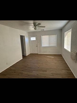 Freshly painted and New laminate wood plank like flooring throughout. Updated windows with all new blinds. New ceiling fans with forced air heat and central A/C. New gas range for all your cooking needs. New water heater. Laundry hook=ups in the garage. 6' commercial grade chain link fence around large backyard. Off street parking. Pets are negotiable.