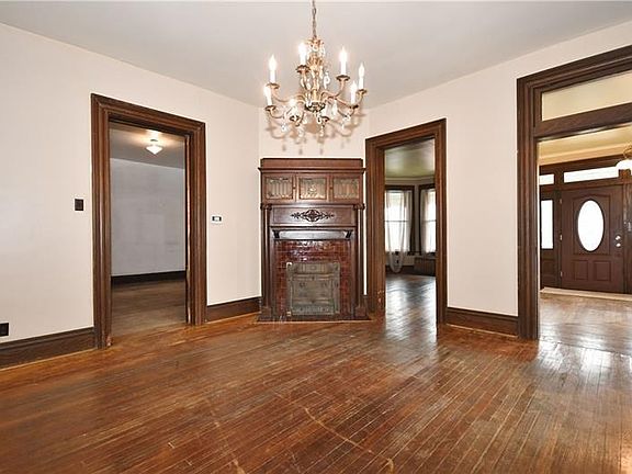 This gorgeous home boasts original wood flooring throughout, original tiled fireplaces with incredible woodwork, pocket doors and built-ins throughout. An absolute MUST SEE. 10 foot ceilings. Potential for possibly 6 bedrooms in this home. First floor family room could be converted into a first floor bedroom for accessibility reasons and has a Jack and Jill full bath. At top of stairs on second floor, you walk into a 19x13 room we have not included as a bedroom and would make the ideal playroom with built in shelving perfect for books and toys. This home sits on a huge lot and includes a 21 foot round above ground pool and detached garage with, 50amp electrical panel and an attic for storage. (2) 100 amp electrical panels, new carpet upstairs, second floor laundry, newer roof. Faux brick wall in kitchen. Patio off of back door perfect for entertaining. Sliding doors off of family room leads to the backyard. Walking distance from Clairton pool/park.