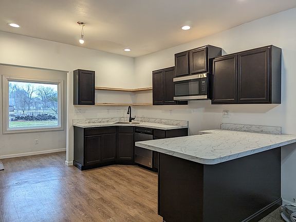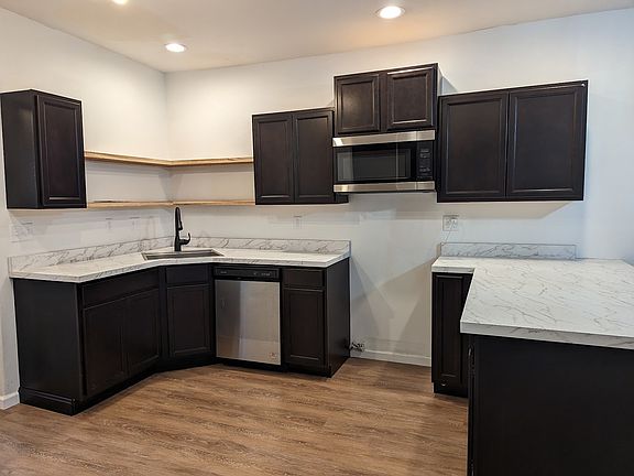 Home has been remodeled extensively and completing small finishing touches. This home has a new roof, new siding, facia, gutters, exterior and interior doors, flooring, some windows, all new cabinetry throughout, completely new bathroom and plumbing, all new lighting, new water heater. Large yard (2 Lots), large oversize 2 car garage. Yard around house is being tiled so please forgive the mess. Roof on garage will be repaired. Home is agent owned and be sold in As-is Condition.