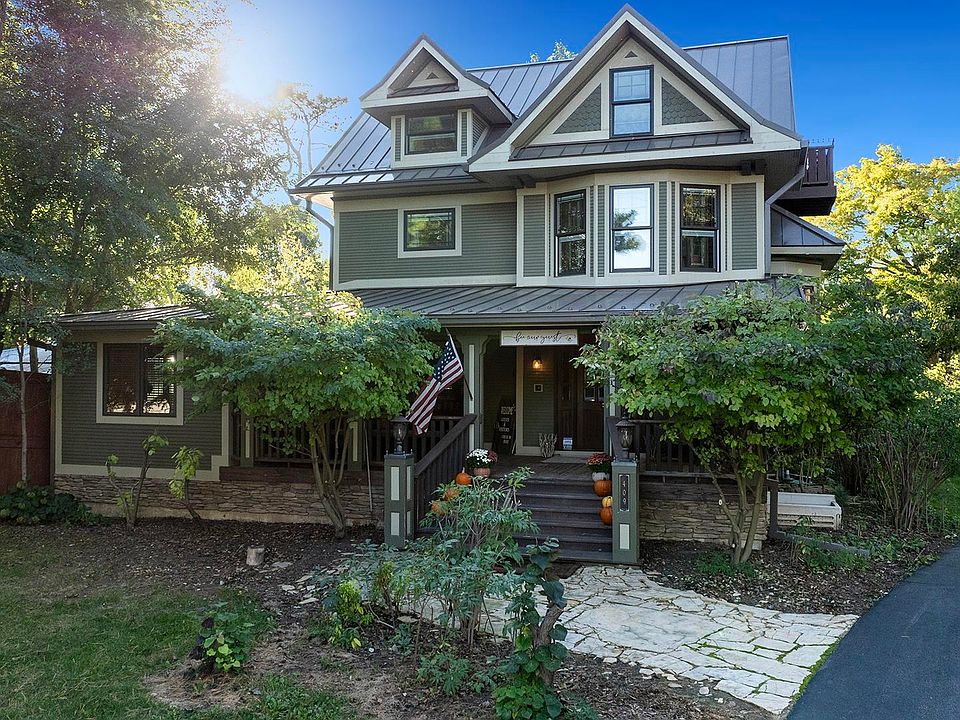 Welcome to Lincoln Way Stay, this property is a completely private, all inclusive accommodation designed to make you feel transported to a world of luxury. Following eight and half fabulous years of welcoming countless guests, brides and grooms, and gatherings of all shapes and sizes, the property is presently utilized as a short term guest lodging. The main house spans 10,000 square feet across four floors and includes six bedrooms. Each floor is equipped with its own HVAC system. The main floor features a welcoming foyer, a spacious living room, an elegant dining room, a dining porch, modern kitchen featuring high capacity commercial appliances, perfect for preparing and serving meals for large groups, and a powder room. On the second floor, you'll find three bedrooms with private bathrooms, including a master suite with French doors opening to a small deck. This floor also houses a laundry room with two washers and dryers, sink, and storage space. The third floor offers two bedrooms with a shared living room and bathroom, each bedroom featuring its own vanity. The stone cellar is a standout, with a bathroom, shower, custom-built Finlandia sauna, bedroom, studio kitchen, living room, workout room, storage, and a tornado bunker with an escape window. The property also includes an original barn used for lawn storage with two garage doors and a historic well house, both dating back to the late 1800s. The carriage house, approximately 2,300 square feet, features a second story retreat with a full kitchen, living room, laundry room, powder room, and a king suite that includes an en suite bathroom with a shower and jacuzzi tub. French doors open to a private deck from both the suite and the main area, with five car parking below. The 3,200 square foot cottage offers a full kitchen and dining room with an open floor plan, leading to a small foyer and full bathroom. The second floor includes a master king bedroom with a catwalk leading to an open air office and sitting room. The lower level comprises a living room, laundry, bathroom with shower, bedroom, and a cement tornado bunker with garden style windows for emergency exits. The property's enchanting outdoor features include a fireside pagoda, water garden, and yoga lawn, surrounded by native plants and tropicals in warm months, apple trees, and herbs. Relax by the fountain, flowing creek, and koi fish waterfall beside the yoga lawn, and discover cozy spots to rest and renew in this quiet Midwestern community. With over $3 million in renovations, this is truly a one of a kind offering.