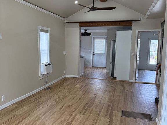 Ceiling fansDining areaSpacious kitchenVaulted ceilingsPrivacy fenced yardDrive-through chain link gate