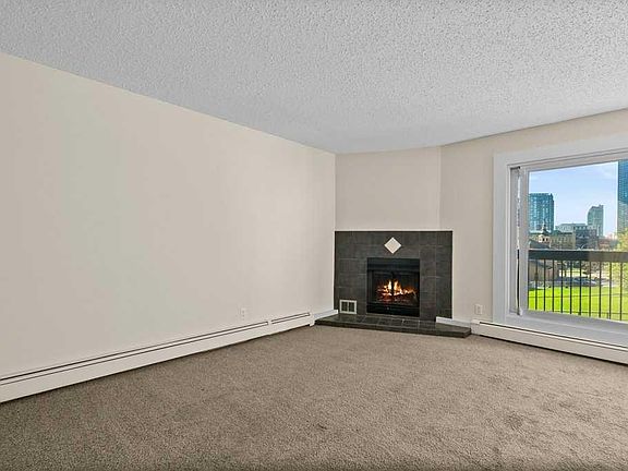 Tremendous views of downtown Calgary from this pet friendly 3rd floor corner unit with assigned stall parking, in-suite laundry, freshly painted interior and wood burning fireplace. Enter into a front hall with the convenience of your own personal laundry set and dual door storage closet with organizers. The tiled 4-peice bath presents counter height storage vanity, new tiled tub surrounds and a low flow toilet. Just off the 4-piece bath is the bedroom with vinyl side window and dual door closet including organizers within. The galley style kitchen was reinvigorated in 2008 with Ikea cabinetry a full set of stainless-steel appliances including a slide in stove, over the range microwave and tiled back-splash. Set just off the kitchen is the nook with access to a massive vinyl sliding patio door leading out to your full-size balcony to take in the panoramic views, enjoy the summer days and nights or just relax and soak in your private outdoor space. Completing this home is the generous size lifestyle room with a focal corner wood burning fireplace. All located in a secure building, self-managed with a healthy reserve fund steps to everything and anything offering the ultimate comfort and convenience of inner city living!