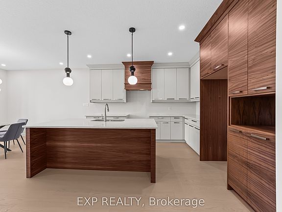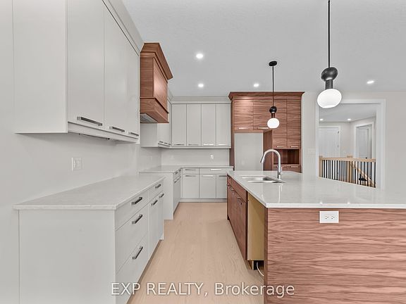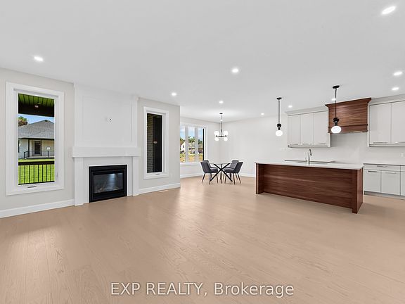 Welcome to this beautifully crafted 2-bed, 2-bath bungalow where elegant details and smart design meet. From the inviting covered front porch, step into a grand foyer with 9-foot ceilings and a striking wainscoted accent wall along the staircase a hint of the quality that flows throughout. At the front of the home, the secondary bedroom enjoys natural light and a private 4-piece bath complete with a built-in niche and its own linen closet. Tucked quietly at the back, the primary suite is a true retreat featuring a tray ceiling, a custom walk-in closet with wood shelving, and a spa-inspired 3-piece ensuite. Here you'll find a zero-entry shower, custom glass door and panel with brushed-nickel trim, built-in niches, and matching brushed-nickel framed mirrors. The heart of the home is an open-concept living space with engineered hardwood floors, 9-foot ceilings, and 8-foot doors for an airy feel. A gas fireplace anchors the living room, while the upgraded lighting and pot lights add warmth and style. The kitchen and dining area flow seamlessly to a covered back deck, perfect for relaxing or entertaining. Practical touches abound: a mudroom off the garage offers built-in cabinetry, a stainless-steel clothes rod, a bench with hooks, and a full laundry set-up with tile flooring. Bathrooms and the laundry room are finished with elegant tile for durability and easy care. The double car garage is insulated including the garage doors themselves, keeping you cool in the summer and warm in the winter. This new build by Branch Homes blends craftsmanship and comfort, ready to welcome you home. Schedule a private viewing today and experience bungalow living at its finest.
