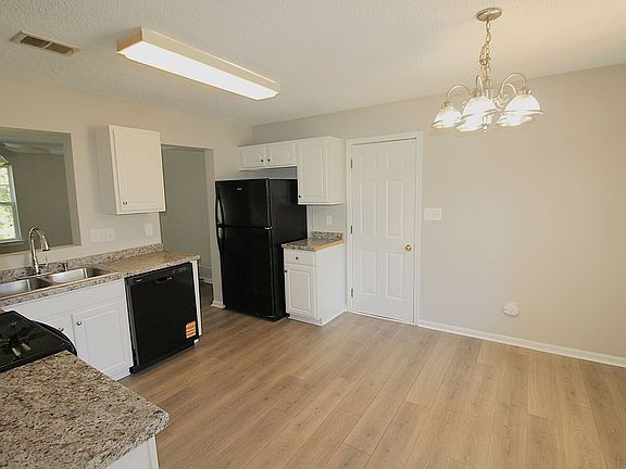 The spacious, eat-in kitchen comes equipped with new black appliances, including a refrigerator, stove, microwave, and dishwasher, and provides ample cabinet space for convenient storage. A separate dining area just off the kitchen offers a versatile space for meals, gatherings, or work-from-home flexibility.
