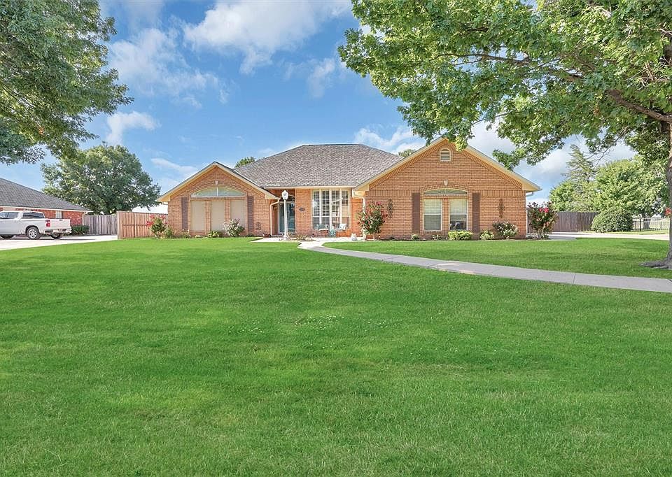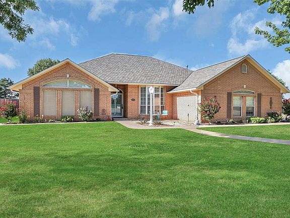 **BEAUTIFUL 4- BED, 3 BATH HOME IN GREAT NEIGHBORHOOD! You’re going to love this well-kept 4-bedroom, 3-bath brick home in one of the most sought-after neighborhoods in Altus. It has plenty of space with two living areas, a formal dining room, a breakfast nook, and a bright sunroom. When you walk through the oversized front door, you’ll step into a tiled entryway that opens to a large living room with tall ceilings and plantation shutters that carry throughout the home. The formal dining room has great character with wainscoting and a gorgeous chandelier. The kitchen is roomy and functional, with a working island, tons of cabinets, recessed lighting, built-in oven and cooktop, and a big skylight that brings in lots of natural light. There are pull-out drawers in the pantry and also under the sink and stove. The second living area (family room) has a gas log fireplace, built-in shelves, and more recessed lights. The primary suite is huge and has brand new carpet, a pan ceiling, two big walk-in closets, double sinks, a soaker tub, private toilet room, and a beautifully updated walk-in shower done by Zintex. One of the guest bathrooms was also updated and features a tall double vanity and large walk-in shower. Extras include; Laundry room with sink, folding table, and storage, Sunroom with blinds and a refrigerator, 2-car garage with storage, plus another fridge and freezer. Covered back patio, privacy fence, and storage building. Sprinkler system in the front and back, rain gutters. Roof replaced in Aug. 2024 (50-year warranty. New carpet in the family room and one bedroom (June 2025). Two water heaters and a 10-year warranty on the A/C compressor. This home is move-in ready and has all the space and features you’ve been looking for. Don’t miss out—come take a look!