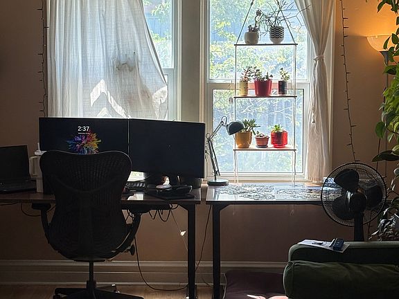 Private entranceBright peaceful bedroomHardwood flooringNatural lightNeutral color paletteClean finishesAccess to laundry area