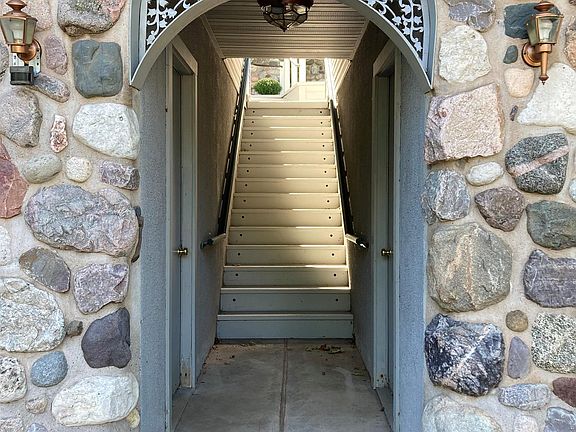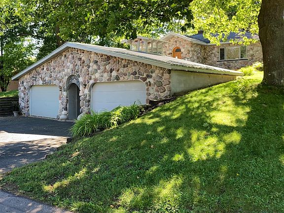 This one of a kind “Stone House” with lovely landscaping is nestled in the wonderful neighborhood of Shiras Hills. The full stone exterior is made of stones native to the Marquette area. The window sills are made of beautiful slate which combined with the stone exterior make for relatively maintenance free home and garage. As you enter through the arched wood door, you’ll find wonderful craftsmanship throughout this cozy 2 bedroom 1 bath ranch home. Custom built-in shelves, hardwood floors, walk-in closet, new carpeting, fresh paint, spacious bathroom with a jetted tub and central air are some of the features you will find. In the rear of the home there is a huge deck perfect for entertaining your family and friends or a quiet place for sitting and relaxing. Two separate 2 car garages provide plenty of parking and storage with a covered walkway up to the home. One of the garages has a stove and will serve as the perfect workshop. For additional storage, the property has a storage shed for all your landscaping and recreational storage needs.