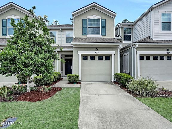 Introducing a perfect starter home nestled in one of St. John's fastest growing areas. This charming 3-bedroom, 2.5-bath townhome effortlessly blends comfort and modern living with an array of community amenities. Step into the kitchen, featuring sleek stainless steel appliances, a convenient breakfast bar, and elegant hardwood cabinetry, ideal for cooking and entertaining. The open floor plan invites you to enjoy a spacious living area, complemented by central A/C for year-round comfort, plush carpet flooring, and the convenience of an in-unit washer and dryer. Unwind on your private porch or patio, and take advantage of your own yard and attached garage. As part of the vibrant Durbin Crossing community, you'll have access to a wealth of amenities, including refreshing pools, a state-of-the-art gym, and pickleball courts. This townhome is not just a place to live; it's an invitation to embrace a connected lifestyle in a thriving neighborhood.