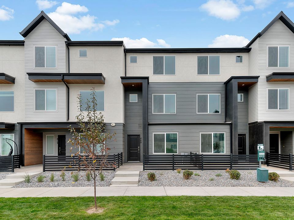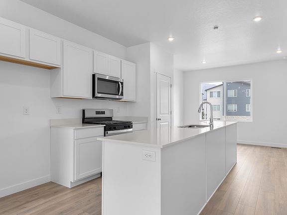 Step into modern living with this beautifully designed Edgewater townhome. The entry level includes a flexible room and full bath perfect for guests, a home office, or an extra bedroom. On the main floor, enjoy soaring 9-foot ceilings, expansive windows, and a bright open layout. The kitchen stands out with quartz countertops, stainless steel appliances, a gas range, and luxury vinyl plank flooring. The upper level offers two spacious bedroom suites, each with its own bathroom, plus a laundry closet with washer and dryer already in place. Central air, an attached garage, and access to community perks clubhouse, pool, pickleball courts, and playgrounds make this home both comfortable and convenient. Located near I-15, FrontRunner, shopping, dining, and entertainment.