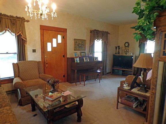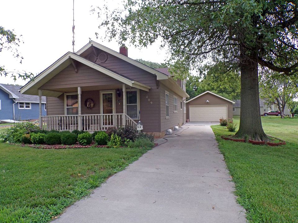This Old style home has a living room, dining room, eat in kitchen, family room with French doors leading to the back deck, laundry room, two bedrooms, and a full bath with walk in tub on the main level. There is one large bedroom upstairs. There is a nice front covered porch. Has a partial unfinished basement that houses the utilities and plenty of storage. This property also has a two-car detached garage in the back. Very well taken care of home in Miltonvale! This house has siding on the outside and a newer roof, and new paint throughout!