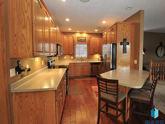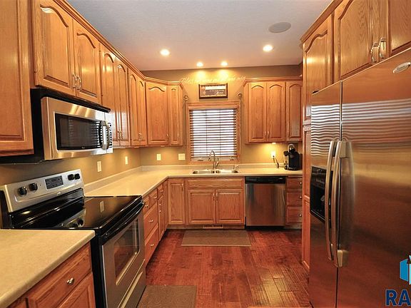 Spacious 5+ bed, 3.5 bath Ranch home nestled in an established Brandon neighborhood. Covered porch leads to the front entry opening to the large living room. Wood flooring flows through the kitchen & dining space, offering generous cabinet/counter space, stainless steel appliances, breakfast bar for additional seating, double fireplace + convenient patio to deck access. Highly desirable 3 beds on main, including the master suite with his and her closets. Spacious mud room right off the garage with separate laundry room and ½ bath. Lower level features in floor heat throughout and hosts the sizable family room highlighting the custom built-ins, 2nd fireplace and desk/office space. 2 additional beds and bonus room plus 3rd full bath completes the lower level. Home is wired for whole home audio. Home includes: newer carpet &exterior paint, water softener, fenced in yard and sprinkler system. Heated 3+ stall garage offers plenty of storage opportunities. Close to schools & Tallgrass Park!