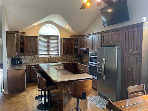 A second living area in the finished basement with a kitchenette/wet bar, walkout basement, billiards table and flat screen TV. Perfect for kicking back and entertaining. The 3rd bedroom is in the finished basement with a Hollywood Style Bath and walk in shower with vanity. Garage entry from basement.