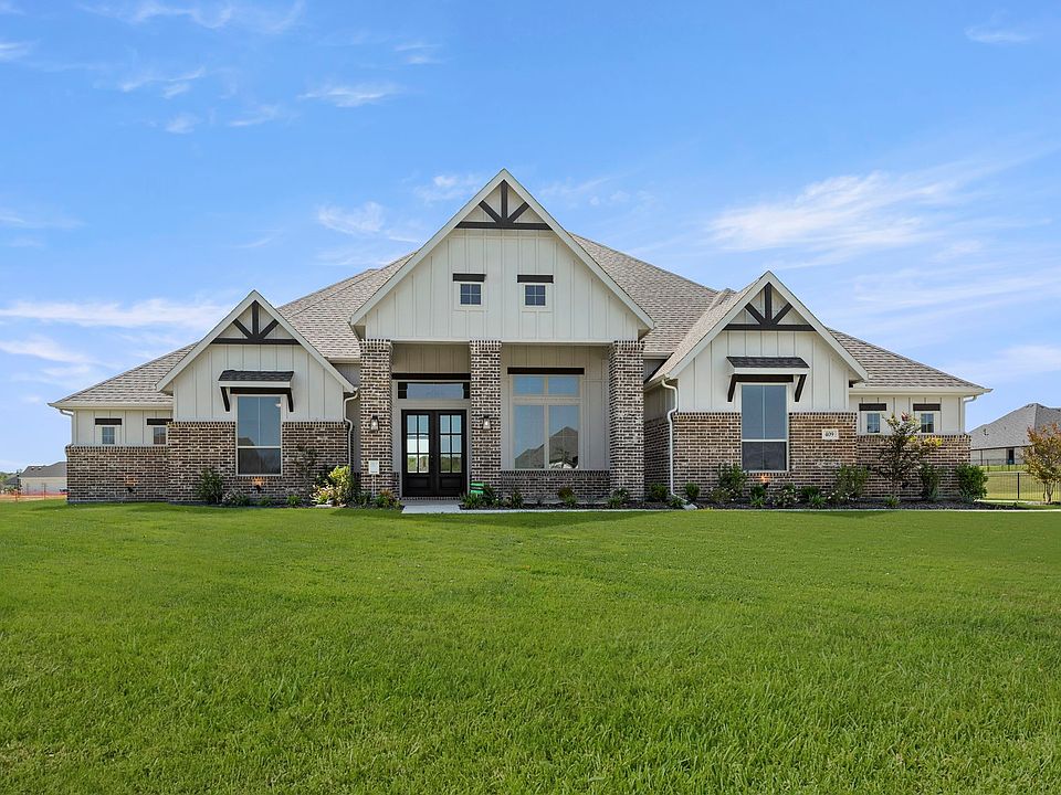 MLS# 21098666- Built by Kindred Homes - Ready Now! ~ Welcome to Stoney Creek, the most sought-after neighborhood in Sunnyvale! The popular Brooks plan is an open concept farmhouse-style home featuring 3 bedrooms, 3 bathrooms, a spacious game room, a separate study, and a 3-car garage, all on an ACRE lot! This home boasts double front doors and sliding doors off the family room, providing a seamless indoor-outdoor living experience. The large island kitchen is equipped with pendant lights, black matte plumbing finishes, Quartz countertops, and engineered wood flooring throughout—just a few of the many upgraded finishes offered. You won't want to miss this house, come see us today.