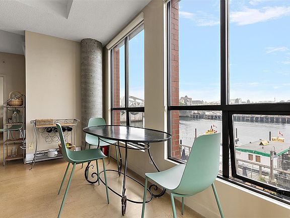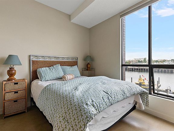 You will have UNOBSTRUCTED HARBOUR VIEWS from this TRUE one bedroom CORNER suite, in this beautifully updated home in Mermaid Wharf. One of the largest floor plans in the building, and boasting 2 BALCONIES this home offers a newer kitchen, gorgeous bathroom, proper master bedroom overlooking the harbour, and living room with spectacular views and gas fireplace. This home is a pleasure to view and includes separate storage and 1 parking space. All Furnishings may be included in the sale price.