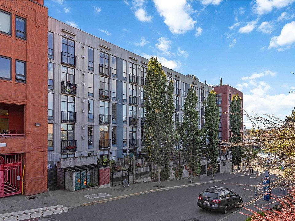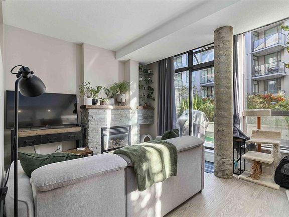 Discover downtown sophistication in the largest unit in the building at Mermaid Wharf! This newly renovated 1-bedroom + den condo blends industrial charm with modern elegance, featuring brand-new stainless steel appliances, a stylish barn door, and fresh paint throughout. Soaring ceilings and oversized south-facing windows fill the space with natural light, while a cozy gas fireplace adds warmth and character. The versatile den with Murphy bed is perfect for guests or a home office. Step outside to your private ground-floor patio and embrace the downtown lifestyle, just steps from the ocean, cafes, and boutique shopping.